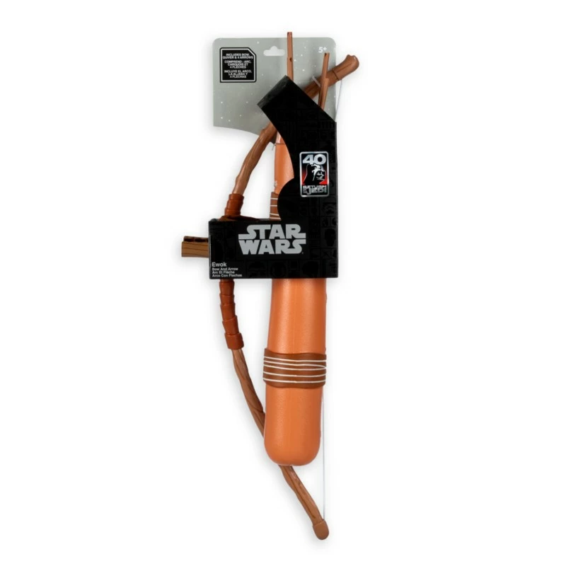 Little ones can jump straight into action with this Ewok bow and arrow! The set includes four arrows, one quiver with a shoulder strap, and a bow. Perfect for defeating the invading forces of the Galactic Empire!