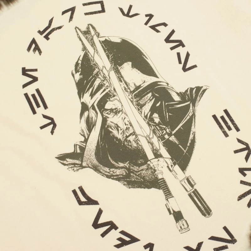 • Artwork on back includes: Aurebesh letters, Obi-Wan Kenobi and Darth Vader screen artwork, battle-locked lightsabers