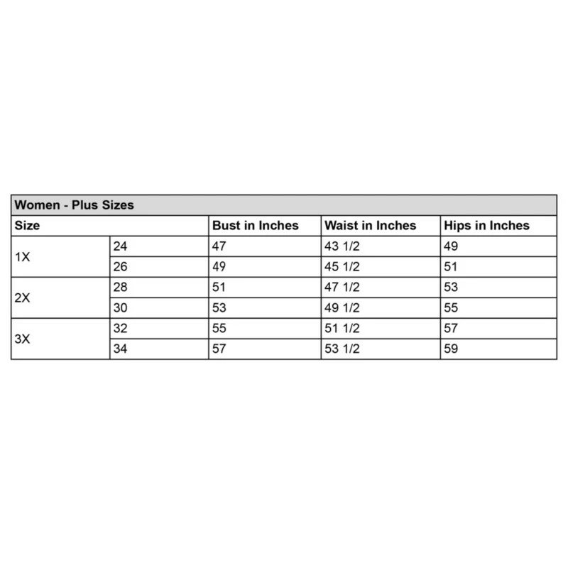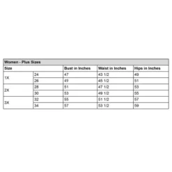 XS, S, M, L, XL, 1X, 2X, 3X
