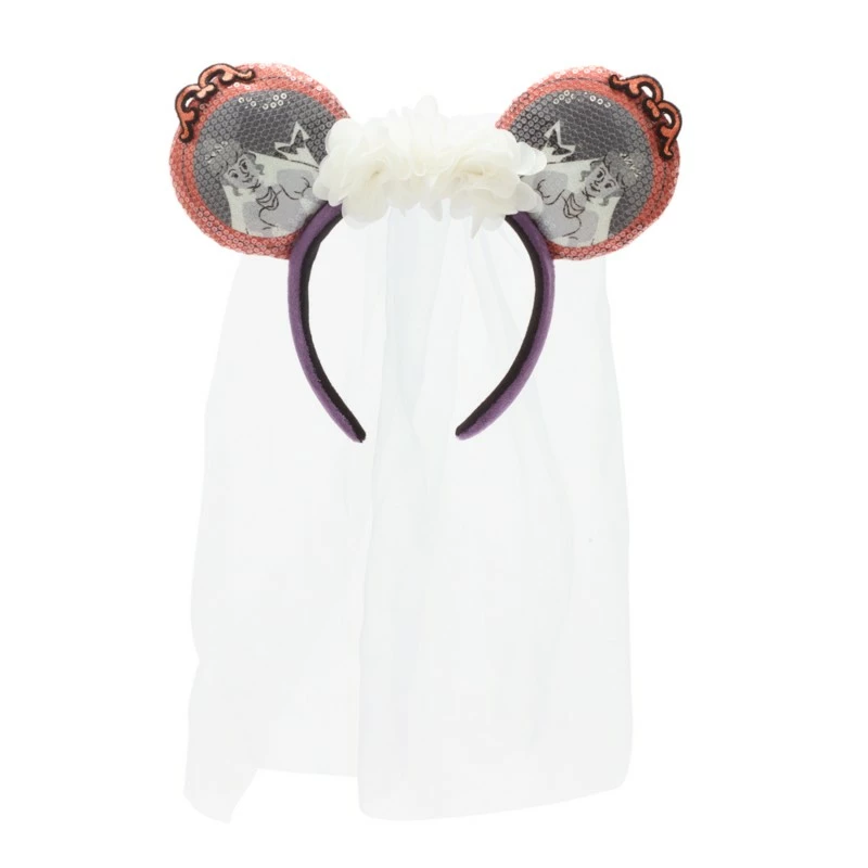 Ear comes the bride! Inspired by the ghostly bride from The Haunted Mansion, this Minnie Mouse ears headband is sure to make a spirited style statement.