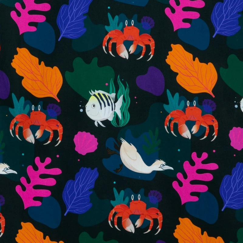 - Tropical print pattern features Sebastian, Flounder and Scuttle